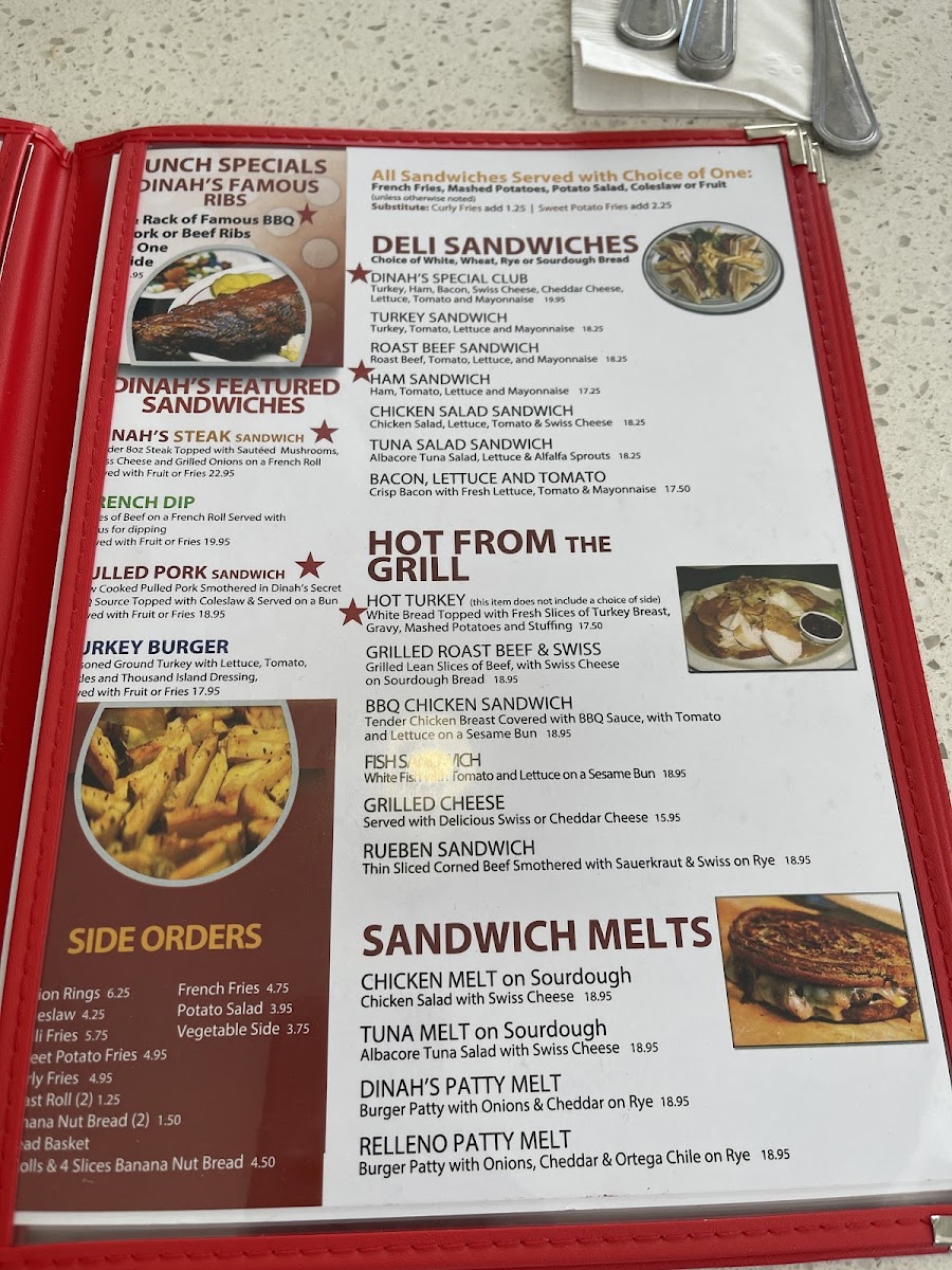 At Dinah's, every detail—from the retro-style booths to the warm, inviting staff—helps create an experience that feels like home. The menu is a treasure trove of American deli classics and fried chicken delights. Whether you're craving a hearty sandwich or a mouthwatering dinner plate, you're in for a treat.