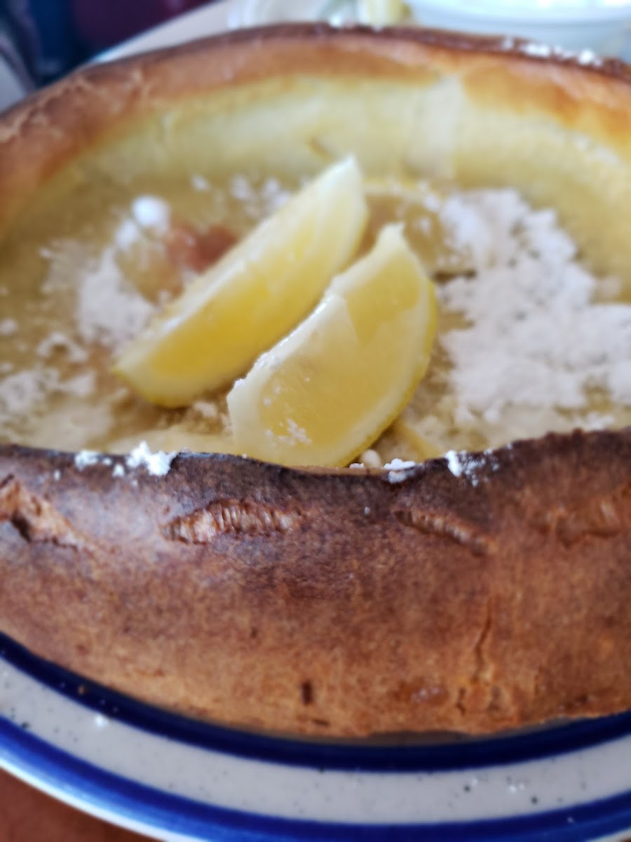 I would say Dinah’s is in my top three favorite diners in all of Los Angeles. The others being Pann’s and Pacific Diner. It’s been open since the 1970s, so is quite famous around town. They serve breakfast, lunch, and dinner and every time I have been the food is terrific. Our server was very quick and attentive and they were very fast with the drink refills. We ordered iced teas (which is home brewed and very good), and they even brought an extra pitcher and left at the table. The coffee is strong and they really have a ton of great options on the menu. There is a giant free parking lot attached so finding a parking space will not be an issue. Inside is very large with a lot of different seating options from booths to tables to counter seating. Just as I would hope the inside looks like a traditional 50s diner and really is a great throwback to classic Los Angeles. The menu is very large and it has a lot of great options so it was very hard to choose what we wanted to eat. We ended up starting with a Cinnamon Roll because we saw them as we entered the restaurant and it was gooey and sweet and wonderful. It’s huge and covered in frosting and we both really enjoyed it. We ended up ordering the German Pancake , or as it is also known: The Dutch Baby. It was honestly really great, and was better than a lot of the other versions I’ve had of it. I decided to order a side of over easy eggs and put them in the middle of the pancake, which I would really suggest. Overall a delicious diner with fair pricing and large portions and free parking. I would certainly recommend to anyone looking for a solid casual dining option.